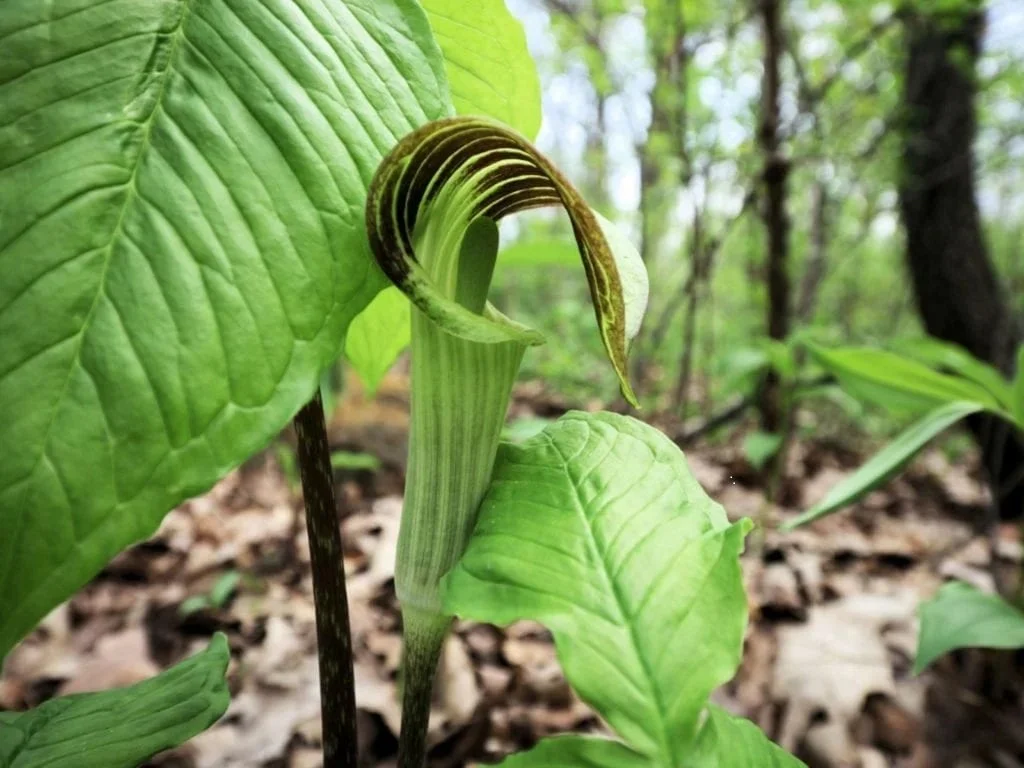 It’s May, wildflower season in Wild Philly, and one of the easiest to recognize spring wildflowers is Jack-in-the-pulpit, that tall, slender flower with a highly variable striped “pulpit” surrounding the long slender “Jack,” the minister standing to offer a sermon on the forest floor.